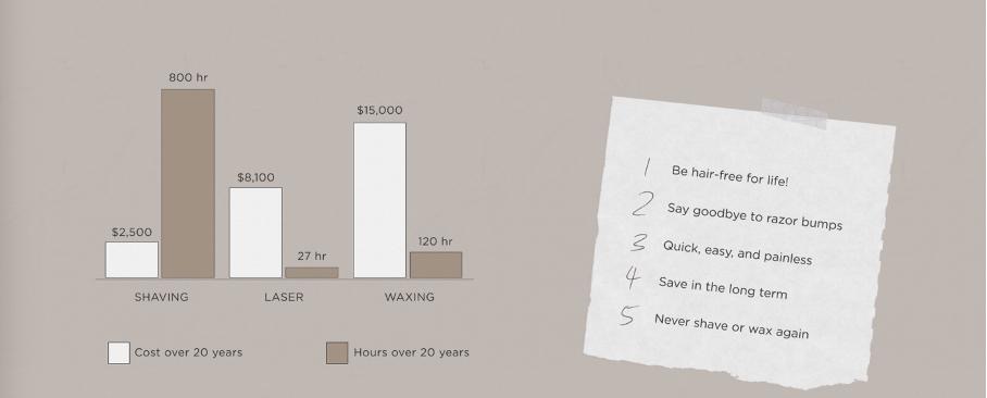Kies voor een oplossing die verder gaat dan tijdelijke resultaten. Met laserontharing bespaar je op de lange termijn niet alleen tijd en geld, maar ervaar je ook het comfort van een altijd gladde huid — zonder irritaties, ingegroeide haartjes of dagelijkse onderhoudsroutine.